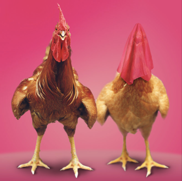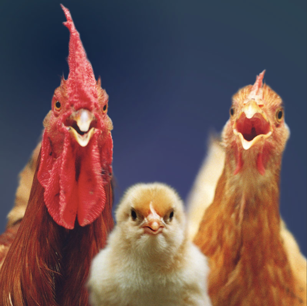 Uno de los primeros trabajos de Zhenzhong, con los que logro reconocimiento y fama, se titula “Lucky Family”, 1995. En esta serie utiliza al gallo, la gallina y los polluelos como sarcástica metáfora del matrimonio tradicional y la construcción de la familia, en una dramática alusión a los problemas de las familias chinas en la actualidad. La pareja, con y sin polluelos hasta llegar a la familia numerosa. Estas son las posibilidades reproductivas de algunos seres vivos, pero en China actualmente, el numero apropiado de hijos dictado por el estado es de uno por pareja..