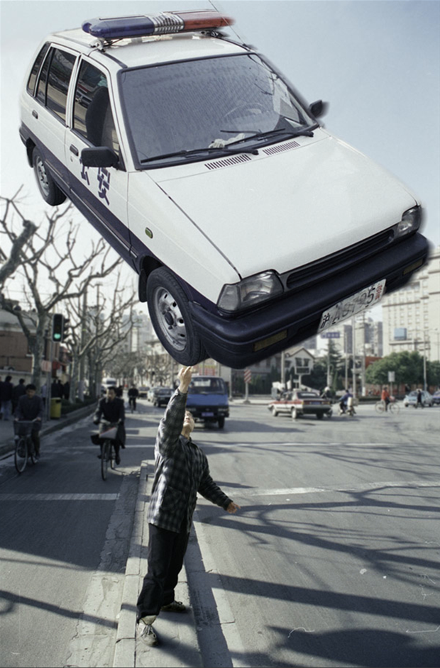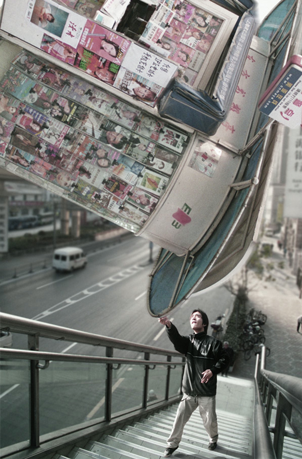 Zhenzhong se acerca a los diferentes aspectos de la realidad de la vida urbana con levedad y sentido del humor, mientras la vertiginosa velocidad del cambio económico, arquitectónico y social parece a su vez desafiar las leyes de la gravedad. Este juego se puede interpretar como un deseo del artista por lidiar con estos cambios. La fotografía que ha estado ligada a la ciudad y sus calles desde sus comienzos en el siglo XIX, se ha convertido en una herramienta testimonial de la transformación social. Bajo su fotogénica superficie urbana se esconden múltiples capas de complejidad social, política y económica.