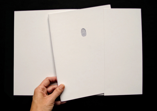 Allí encontré un sencillísimo libro que me cautivó. Se trata de «Twenty ways to disappear«(2013) de Enric Montes. El objeto en si es un enigma. No tiene título ni autor en su portada, tan sólo una huella dactilar. Me reafirma en el placer de las cosas sencillas, aunque no estoy muy segura de que sea apto para mentes olvidadizas o despistadas como la mía.