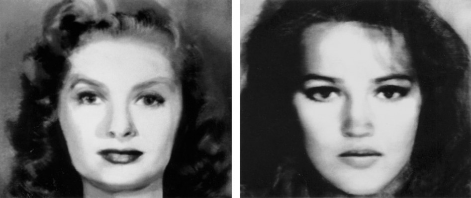 Primer y segundo «Beauty Composites» (Izquierda: Bette Davis, Audrey Hepburn, Grace Kelly, Sophia Loren, Marilyn Monroe. Derecha: Jane Fonda, Jacqueline Bisset, Diane Keaton, Brooke Shields, Meryl Streep) 1982
