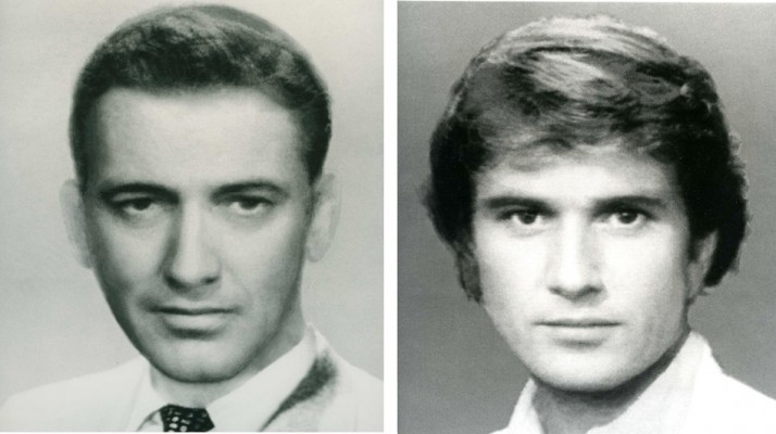 Primer y segundo «Male Movie Star Composites» (Izquierda: Cary Grant, Jimmy Stewart, Gary Cooper, Clarke Gable; Derecha: Richard Gere, Christopher Reeve, Mel Gibson, Warren Beatty, Robert Redford) 1984.